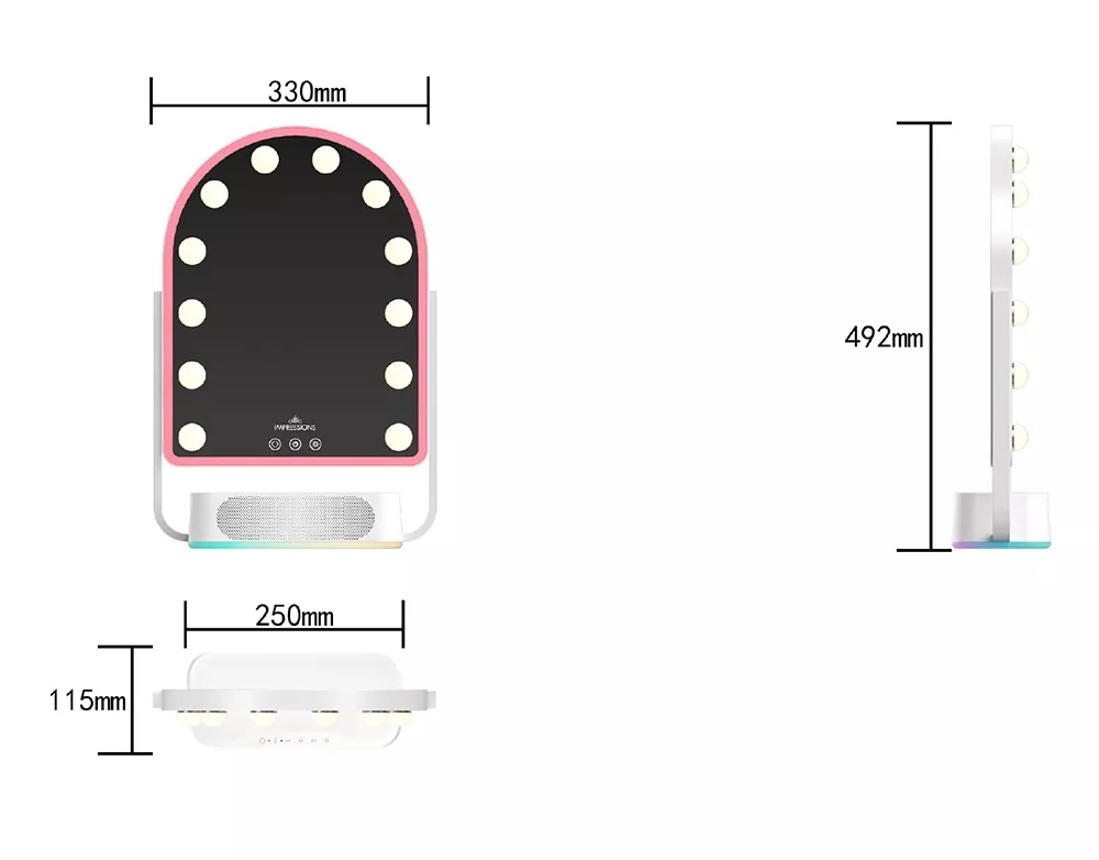 Banyo light mirror LED manufacturer synst(China) ay matatagpuan sa Houjie Town, Dongguan City, Guangdong Province. Ang aming pabrika ay nilagyan ng naka-air condition na pagawaan, mga advanced na kagamitan sa produksyon at kagamitan sa inspeksyon upang matiyak na ang kalidad ng bawat produkto ay maaaring matugunan ang iyong mga pangangailangan. Gumagamit ang salamin ng banyong LED na ito ng isang makabagong disenyo ng suspensyon, ang Bluetooth speaker ay matatagpuan sa ibaba, ang bahagi ng salamin ay nasuspinde sa itaas, ang disenyo na ito ay nagbibigay sa banyo ng isang simpleng kapaligiran ng modernong kagandahan. Ang natatanging 360-degree na rotation function nito ay nagbibigay-daan sa iyong maingat na suriin ang bawat detalye ng iyong mukha kapag naghuhugas ka sa umaga upang matiyak na ang iyong balat ay malinis at walang nalalabi; Kapag naglalagay ng makeup, gusto mong tingnan ang pangkalahatang epekto ng iyong makeup mula sa iba't ibang anggulo upang matiyak na ang lahat ay katangi-tangi at perpekto, at madali nitong matugunan ang iyong mga pangangailangan. Dahan-dahan mong ipihit ang salamin, at binibigyan ka nito ng pinakamagandang view, na nagbibigay-daan sa iyong mas mahusay na pagmasdan ang mga detalyeng kailangan mo.