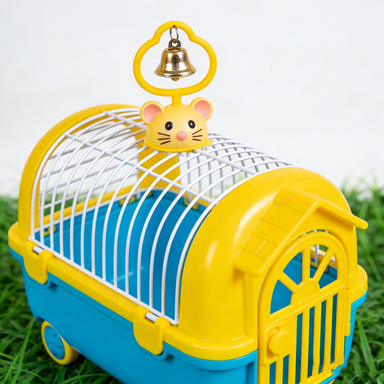 Gaya ng ipinapakita sa asul-dilaw na pet cage na larawan, partikular na idinisenyo para sa maliliit na alagang hayop, na nagtatampok ng cute na dekorasyon ng ulo ng mouse at gintong kampana. Wholesale price $12-15/unit (batay sa MOQ), minimum order 100 units, pagsuporta sa pagpapasadya ng function at pribadong labeling.